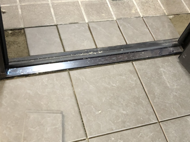 ドア枠が錆びていて、土間タイルの下にサビが侵入し、タイルが浮いてきていましたので